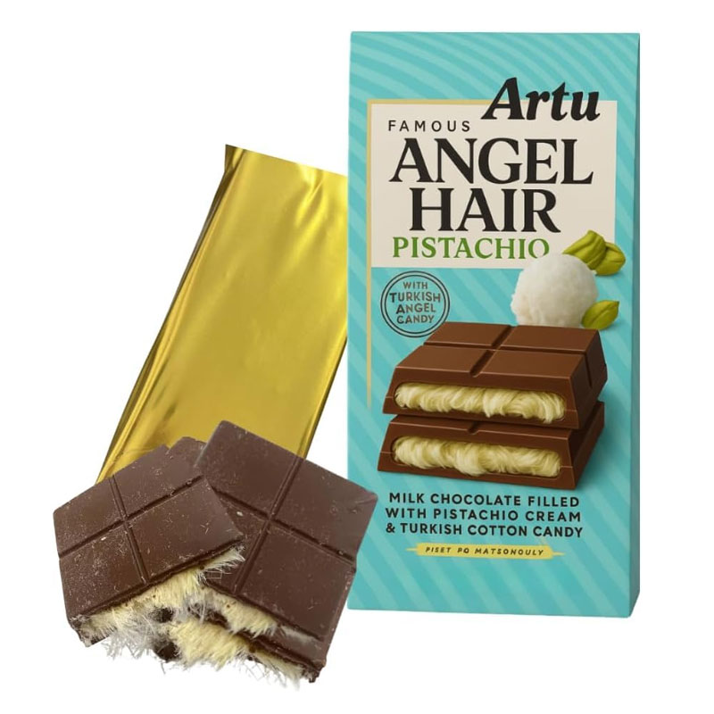 Dubai Chocolate Artu Angel Hair Bar 165g – Turkish Dairy Milk Floss Bar with Pistachio Cream & Cotton Candy – Gourmet Dubai Candy Gift – Unique Middle Eastern Sweets