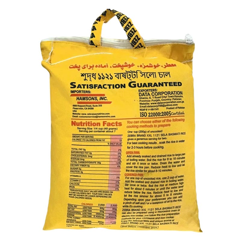 Zebra Basmati Rice – 1121 Sela XXL Parboiled Rice, (10 Lb) Extra Long Grain